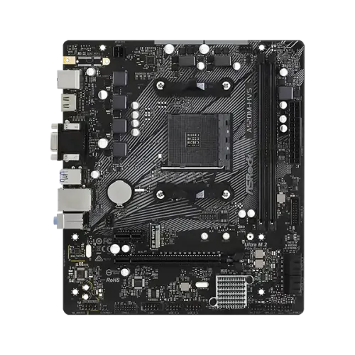 The ASRock A520M-HVS AMD AM4 Micro ATX Motherboard is a versatile and feature-rich option for computing needs. It supports AMD AM4 Socket Ryzen processors, offering a 6 Phase Power Design for reliable performance. With support for DDR4 4733+ (OC) RAM, it ensures fast and efficient multitasking. The motherboard features multiple connectivity options, including PCIe 3.0 x16 and PCIe 3.0 x1 slots, D-Sub and HDMI graphics output options, and various USB ports. It also includes Realtek Gigabit LAN for reliable networking. The Ultra M.2 interface enables high-speed data transfer, and the motherboard supports AMD Smart Access Memory for enhanced GPU performance. With its premium power chokes, high-density glass fabric PCB, and full spike protection, the motherboard ensures stability and durability.